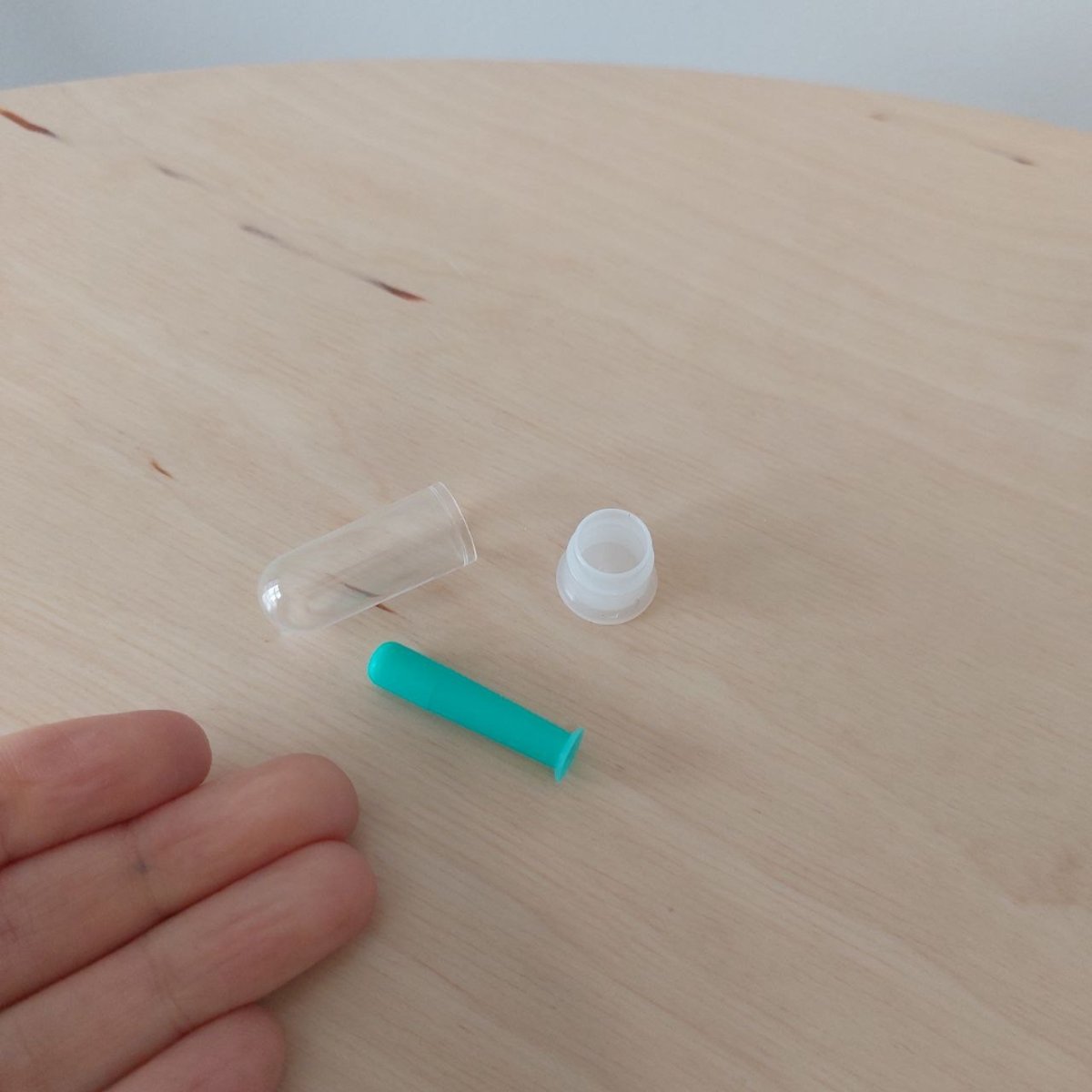 ✔ Aplica 1 a 2 gotas de solução salina no olho